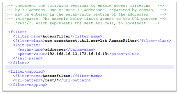 Add one or more IPs (separated by comma) in the web.xml file as shown below: