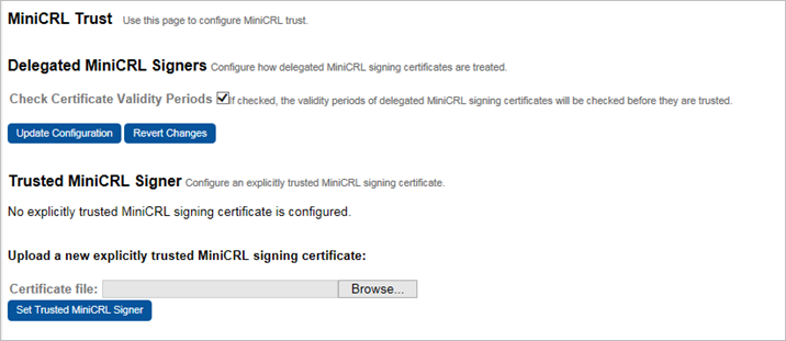To add a new trusted MiniCRL signer or replace the existing signer, click Browse to select a new signer.