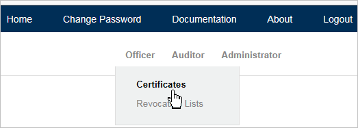 From the Officer menu, click Certificates.