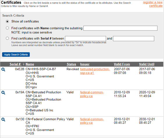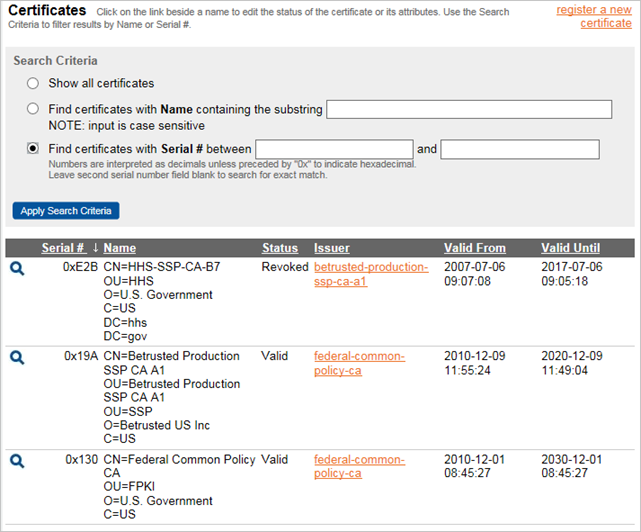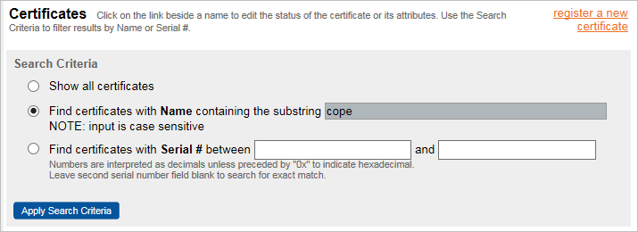 Searching for Certificates by Serial Number