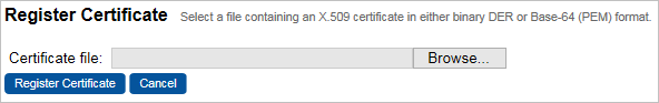 You can register certificates issued by an issuer that is registered with Validation Authority. You can also register certificates through LDAP and URL data sources. For more details, refer and to Add a New LDAP Certificate Data Source and Add a New URL Certificate Data Source.