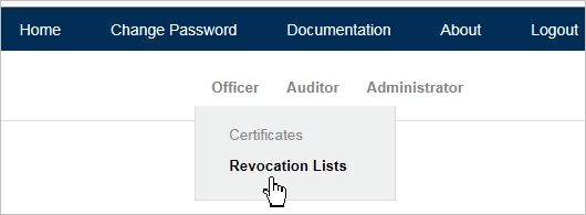 From the Officer menu, you can view the list of loaded revocation lists and the related information.