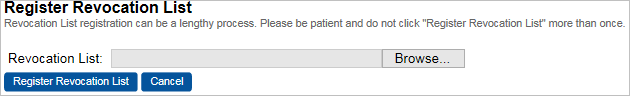 You can only register revocation lists issued by CAs that are registered with the Validation Authority. A revocation list will be ignored if it is not more recent than the current revocation list for its issuer.