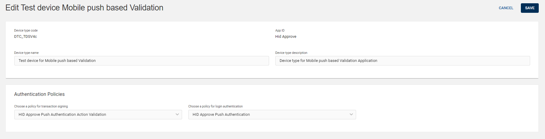Device type description The description for the device type. App ID Identifier for the application (either the default HID Approve app or a custom app developed using the HID Approve SDK).